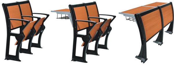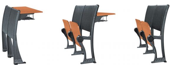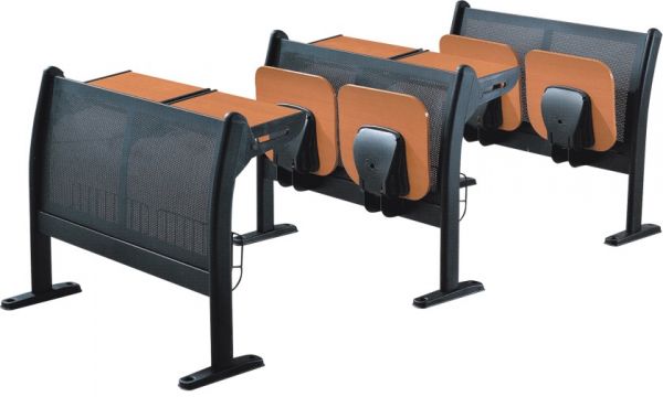 e. 内藏折叠式写字板,写字架原材料采用铝合金,写字板采用三聚氰氨板,可收藏于扶手脚内,合理利用使用空间。